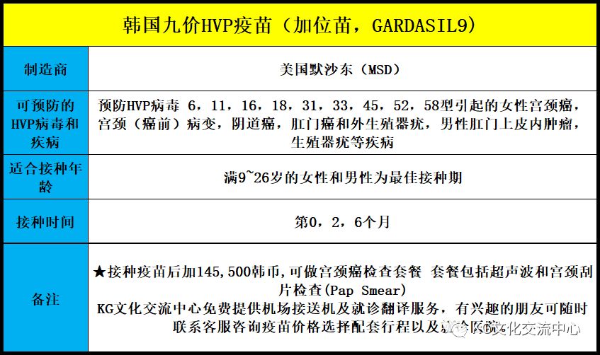 来源:kgcec 九价HPV疫苗韩国注射(宫颈癌疫苗) 九价HPV疫苗 125万韩币(检查+三针疫苗) 只打疫苗68万(约4000人民币)三针 检查:阴超,子宫卵巢检查,阴道炎症细胞检查,宫颈癌细胞组织检查 宫颈癌 宫颈癌是最常见的妇科恶性肿瘤之一,原位癌高发年龄为30~35岁,浸润癌为45~55岁,近年来其发病有年轻化的趋势,其晚期死亡率接近100%。深受广大观众喜爱的香港著名演员梅艳芳40岁时就因罹患宫颈癌去世,引众人唏嘘。 研究发现99.7%的子宫颈癌都是因感染HPV造成的,HPV也可以引发其他相对少见的癌症,如阴茎癌、喉癌、肺癌和肛门癌等。 HPV病毒大多数情况下,是通过性行为传播没错,所以不过早的进行性行为,不抽烟,做好万全的保护措施,有稳定的伴侣,的确可以在一定长度上减少HPV病毒的感染,但绝不是一劳永逸的。因为皮肤接触,也可能传染HPV病毒。这就是HPV病毒比HIV(艾滋病致病病毒)更难杜绝的原因之一。 但好在,我们现在对它并不是无能为力。至少我们有疫苗可以防治它,防治HPV病毒的疫苗,是世界上,目前为止,唯一一种,可以防癌症的疫苗。 疫苗种类: 二价疫苗(针对HPV16、18),四价疫苗(16、18、6、11)和九价疫苗(HPV16、18、6、11、31、33、45、52、58)。HPV病毒有很多种,数字是这种疫苗能防的病毒种类,三种疫苗安全性相当,效果递增。 接种时机: 推荐应在所有目标年龄11-12岁的男女孩进行HPV疫苗接种,对于未在目标年龄接种疫苗的男女性均可于26岁前补种。其中,对于9-26岁女性,推荐二价、四价或九价疫苗;对于9-26岁男性,推荐四价或九价疫苗。更早期(9-14岁)及性行为开始之前接种HPV疫苗效果最好。 接种剂量及时间: 三种疫苗均需要接种三针,分别在0、1-2个月及6个月三个时间点给药,目前无应用增强型疫苗的指征。 就资料来看,因为HPV疫苗上市时间不长(2006年开始),所以没有办法对它确切的有效保护年限进行完整统计,但宫颈疫苗,对于癌前病变的保护超过95%,可以预防70%以上宫颈癌的发生,所以还是非常有效的。 关于疫苗的诸多困惑 我们对宫颈疫苗的困惑合情合理,毕竟在我们的认知里,没有出现过能够预防癌症的药物存在。 第一个疑问,“我超过了26岁,打疫苗就没用了吗”? 我身边本来对打宫颈疫苗保有热情的朋友,在看到了“9-26”岁的年龄段之后很泄气,觉得自己已经27了,打了就没用了。 关于26岁究竟是不是分界线这个问题,一个姐姐曾忐忑的问了澳大利亚给自己打疫苗的医生,医生啼笑皆非的反问“难道26岁生日一过,就是另一个世界了吗?” 所以说9-26岁这个坎,并不是严格的设置给我们的分水岭,而是一个平均值。 只要你的身体素质不错,说不定,到了30岁打了疫苗,依然可以让你避免一次大的癌症风险呢! 但当然如果是给孩子打,还是越早越好,最好11,12岁就打掉。 第二个问题,“我已经有性生活了,是不是就没有用了”? 没有性生活,当然更好,因为这就在很大程度上,说明了你感染HPV的可能性极低,毕竟没有感染HPV的时候注射疫苗,效果更好,也更保险。 但是只要你的伴侣稳定,卫生措施到位,就算有了性生活,又能怎么样呢?健康的拥有性生活的人岂不是大有人在吗?只要你还处在,“未感染HPV病毒”的状态,就完全可以得到同样的保护啊。如果不放心,就做一个HPV检查。 最后一个问题“ 宫颈癌是女性专有病么” 看到这儿觉得事不关己的男性朋友们,我要给你们也敲一个警钟,HPV病毒不仅仅对女性有伤害,对男性也一样。男性因为种种原因,生殖活动可能比女性要频繁和丰富,所以在最高的报告中,有76%的男性感染过HPV;即使是大部分报告中,男性感染HPV的水平也维持在20%。 男性,除去两年内自身清除病毒的人群,HPV病毒会造成肛门癌,口咽癌,阴茎癌等和宫颈癌类似的恶性癌症。 韩国HPV疫苗优势 韩国的9价HPV疫苗也是产自美国默沙东的GARDASIL 9,韩文名称为가다실 9,能够预防9种HPV病毒。 在国内HPV疫苗仍以4价为主,在2价基础上仅增加了对尖锐湿疣的预防,远不如9价疫苗全面。 少数地区虽然有9价疫苗上市, 但是数量少,价格高昂,经常出现供应不足和价格虚高的状况, 这种情况下,增加了香港或者日本韩国接种HPV疫苗的趋势。 韩国早在疫苗投产伊始,便积极从美国进口HVP疫苗,普及率极高。 在地缘上, 韩国距离近, 机票以及住宿价格便宜。HPV疫苗是韩国政府支持推荐注射的一种疫苗,为韩国免税产品,价格相对也比较实惠。 同时,韩国医疗观光产业发达, 在接种疫苗的同时, 还可以享受观光,购物, 医疗, 美容, 夜游等各式服务,可以利用短时的休假同时接种疫苗和旅游购物, 既可健康身体,又可放松心境,一举多得。